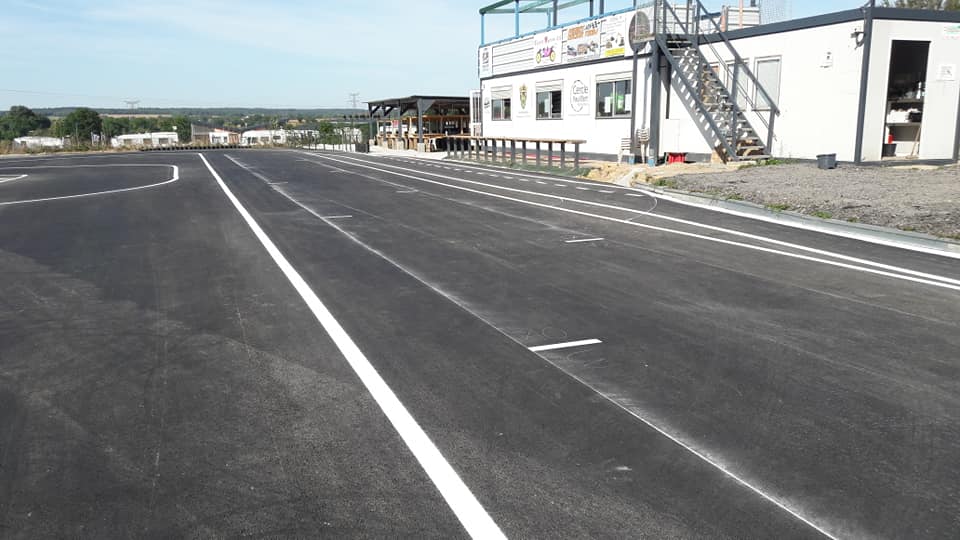 Après la construction de notre circuit bitume place à la peinture des bandes qui vient d'être faite. La prochaine étape sera les intérieurs en rouge. En attendent nous continuons les travaux qu'il y a faire tout au tour de la piste.